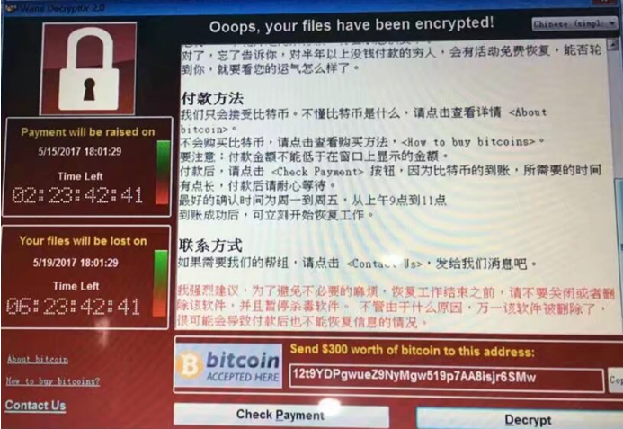 近日网信中心接到高校信息安全工作组安全警示报告,全球范围内正在爆发一次利用windows操作系统漏洞的勒索病毒,工作组反馈国内高校已出现个人用户感染该勒索病毒,重要文件被加密,类似下图所示。