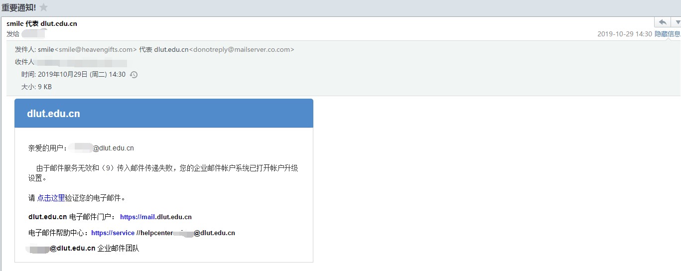 近期根据用户反应,我校大量教工收到钓鱼邮件。邮件内容如下: