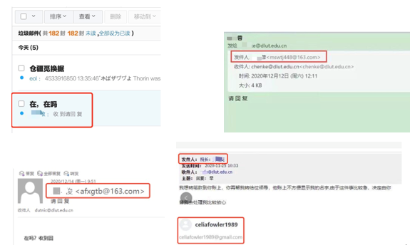 近日,网信中心在邮件系统日常监控中发现大量针对我校师生的钓鱼邮件,通过将发送者中文名仿冒成我校教职工,精准发送给日常联系的相关师生,试图进行进一步的诈骗行为。大量类似的邮件被邮件系统认定为垃圾邮件并投递到用户的垃圾邮件目录中,但由于发送者邮件地址具有一定随机性,有部分邮件未被识别,在此提醒广大师生注意。