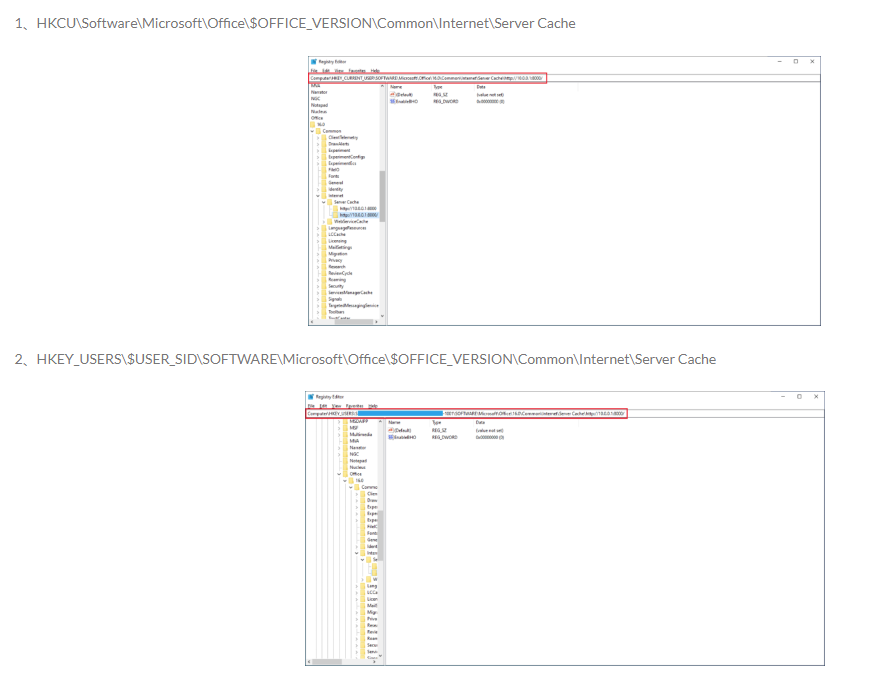 查看office对应注册表下有无异常目录产生: