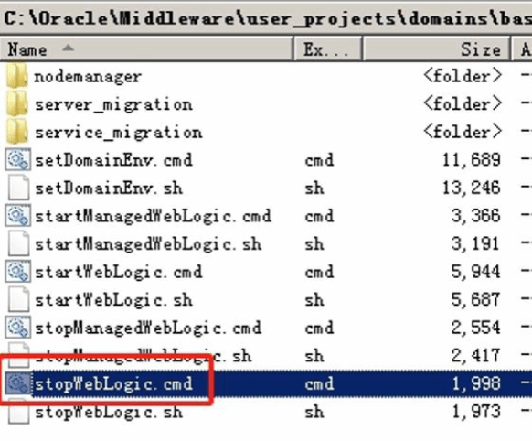 进入域所在目录下的bin 目录,在Windows 系统中运行stopWebLogic.cmd 文件终止WebLogic 服务,Linux 系统中则运行stopWebLogic.sh 文件。