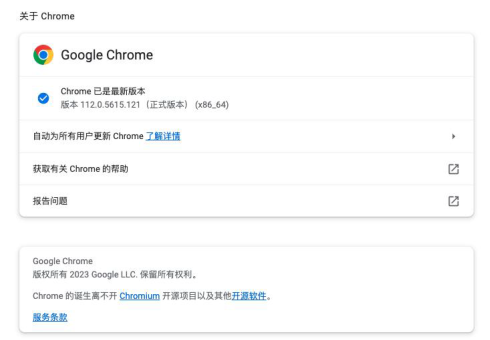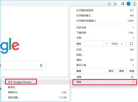 1.查看右上角的“更多”图标,选择帮助-> 关于Google Chrome